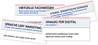 Sie erzählen eine kurze Geschichte, informieren über Vorteile oder werben für ein Angebot. ![]() Machen neugierig und führen mit einem Klick genau dahin, wo unsere Kunden sie haben möchten. |