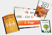 Die eleganten, beidseitig bestückbaren Deckenhänger im Längsformat 60 x 10,5cm (Pixquick suspension) ergänzen Ihr Wegleitsystem perfekt.